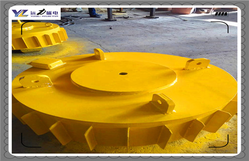 将电磁盘悬挂在输送皮带的上方,输入交流电源通过控制柜整流成直流电,再通过电磁除铁器中的线圈产生电磁场,铁芯被磁化,在电磁盘的下方形成强大地磁场,当运动的输送皮带上有铁件通过时被吸附到电磁盘下,断电时失去磁性,杂铁落入弃铁箱完成除铁作业,保护了下一道工序设备。