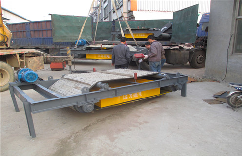 陕西皮带输送电磁除铁器_陕西皮带输送电磁除铁器厂家配件_型号及工作视频,带式电磁除铁器接通电源后,励磁系统产生了强大的磁场,当输送机上的散状物料经过除铁器下方时,混杂在物料中的铁磁性杂物,在磁场力作用下被吸起,当铁磁性杂物达到一定量时,由电动小车带动除铁器脱离输送带到达集铁箱上方,断电后铁磁性杂物在重力作用下掉入集铁箱中.或人工现场清除.