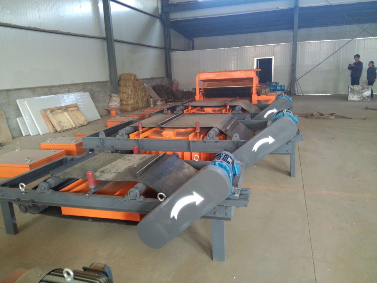 被皮带输送机输送的散状物料,通过安装在尾部支架上的磁选机(即旋转的直流磁铁)时,物料中的铁磁杂物被吸,由弃铁胶带将铁磁杂物拽至电动滚筒卸下,达到自动除铁的目的。